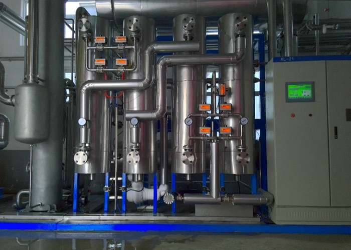 本二氧化碳回收裝置的自動(dòng)化控制采用西門(mén)子PLC與臺(tái)灣彩色除摸屏控制,每個(gè)環(huán)節(jié)的程序、連鎖、安全保護(hù)等控制考慮得周全且可靠性好。進(jìn)氣純度不達(dá)標(biāo)自動(dòng)排空,吸附塔、干燥塔再生閥門(mén)自動(dòng)切換,再生溫度自動(dòng)控制,冷卻水循環(huán)自動(dòng)控制,儲(chǔ)罐超壓自動(dòng)報(bào)警并排空,儲(chǔ)罐滿液位自動(dòng)停機(jī),并附有CO?內(nèi)提純裝置與CO?外提純裝置選項(xiàng),與氣態(tài)CO?接觸部位均采用不銹鋼材質(zhì)。